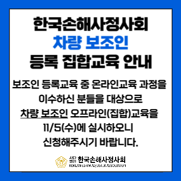 신체·재물·차량 손해사정사 보수교육 (공통5H+신체15H+재물15H+차량15H)